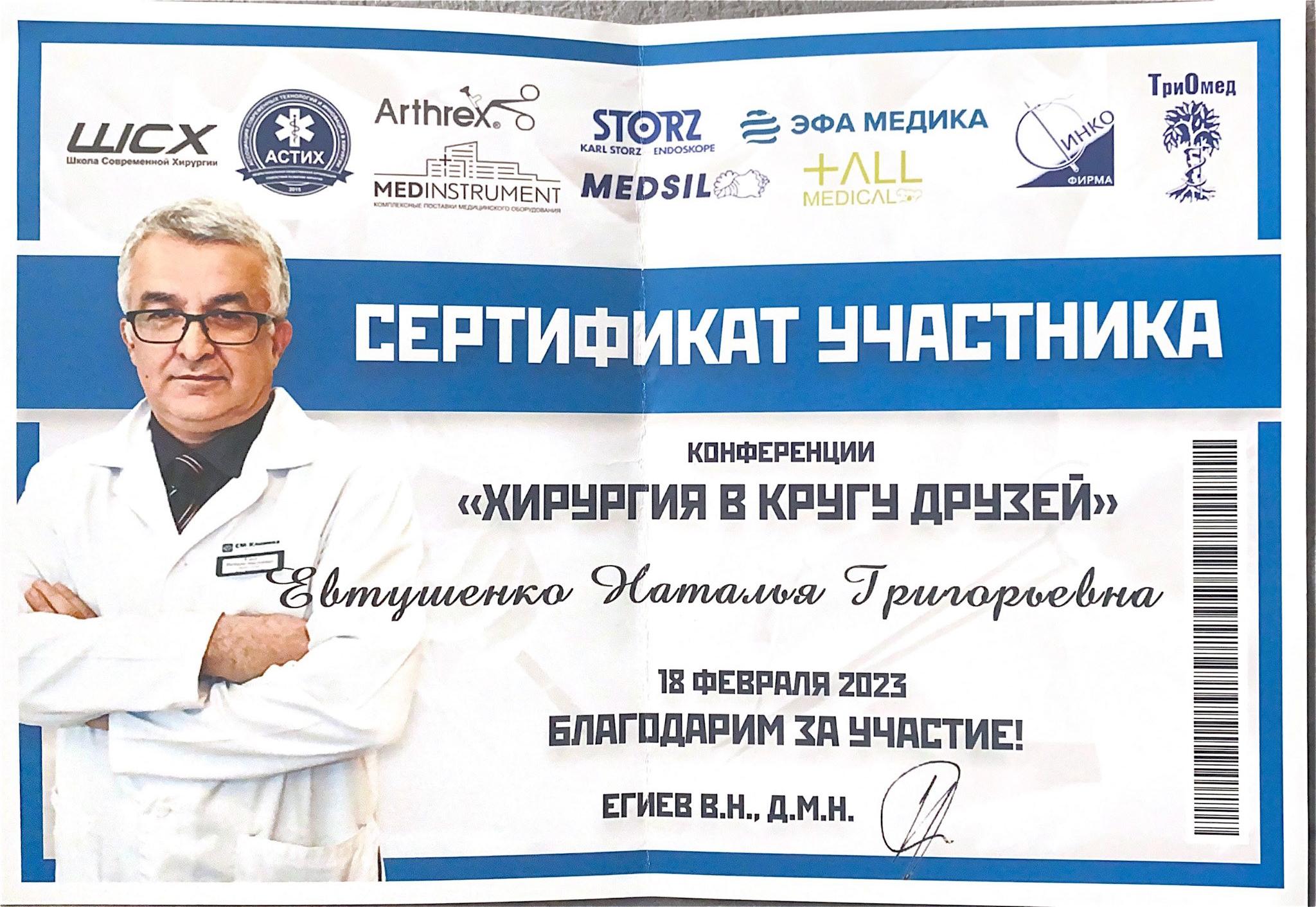 - 18.02.2023, Москва, участие в конференции «ХИРУРГИЯ В КРУГУ ДРУЗЕЙ»