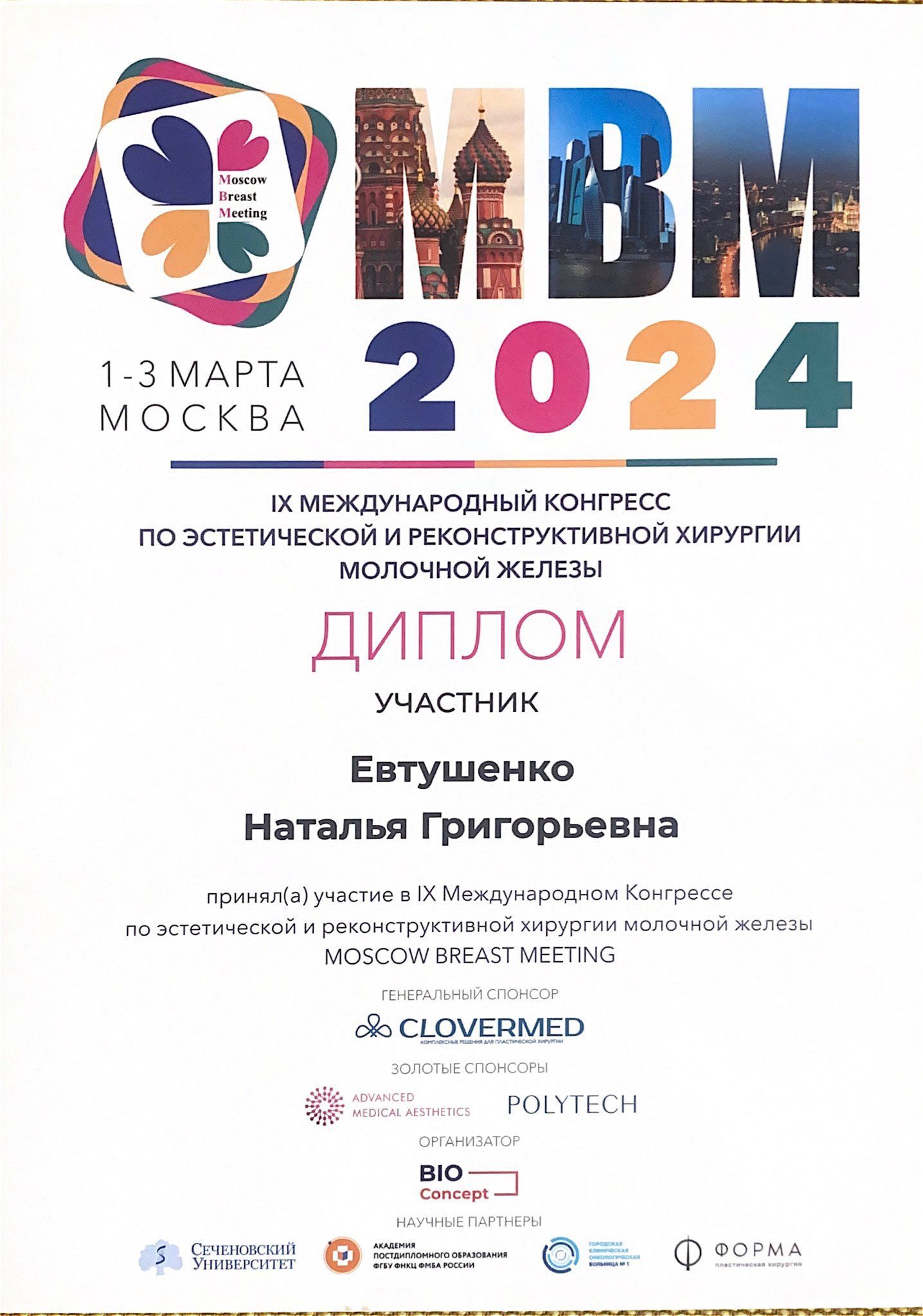 - 01-03.03.2024 , Москва IX Moscow Brest Meeting (Международный конгресс по эстетической и реконструктивной хирургии молочной железы)