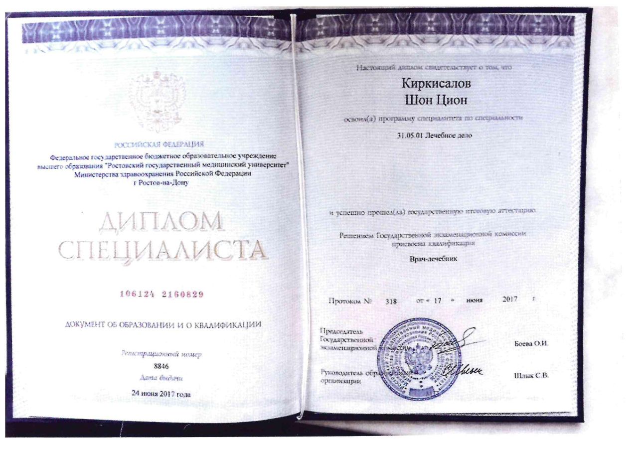 2017 г. Федеральное государственное бюджетное учреждение высшего образования «Ростовский государственный университет» Министерства здравоохранения Российской Федерации г. Ростов-на-Дону, специальности Диплом по специальности "Лечебное дело"