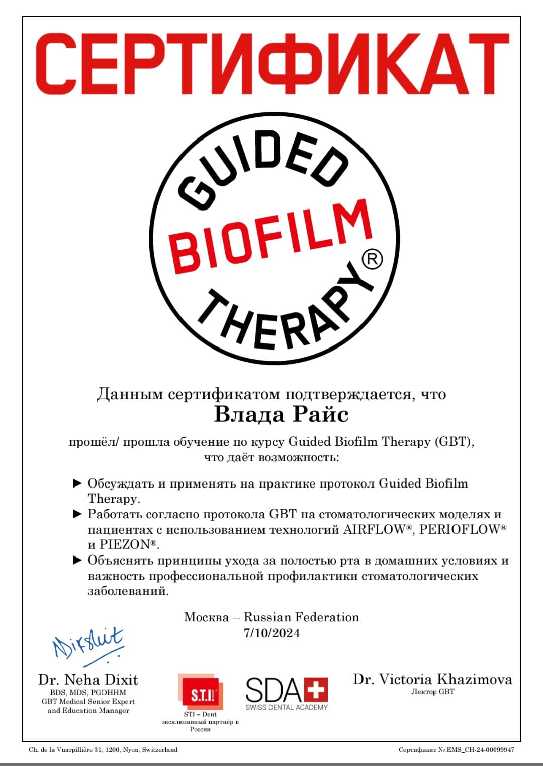 - 2024 — «GBT: Профилактика и лечение заболеваний пародонта»